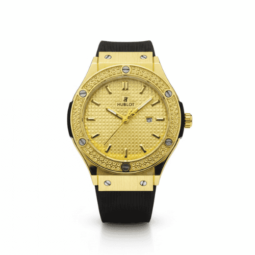This model perfectly captures Hublot’s famous ‘Art of Fusion’ by blending a luxurious look with a sporty, modern feel. It’s crafted from Hublot’s exclusive King Gold, which has a richer, warmer color than traditional gold—you can really see the difference!