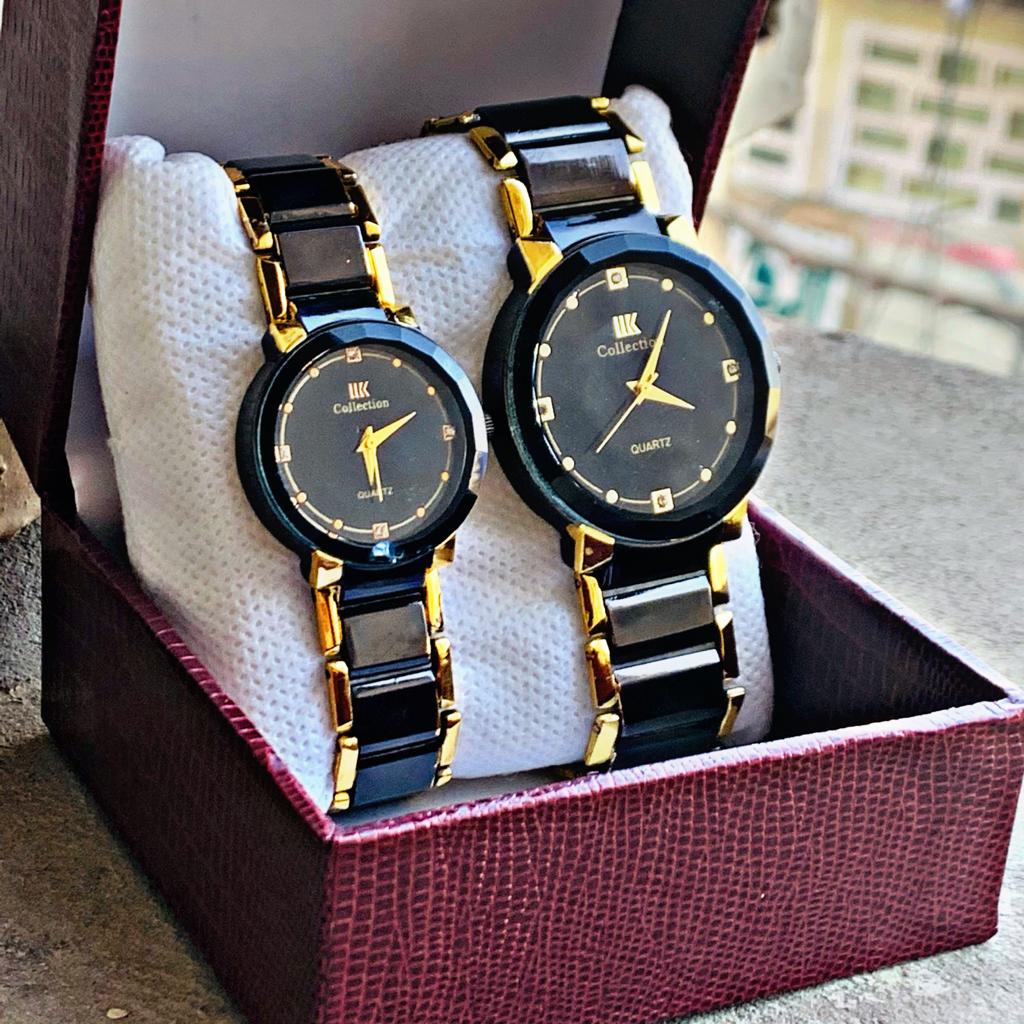IIK Collection Luxury Couple Watch Set – Black & Gold Ceramic Style Matching Timepieces | Perfect Anniversary Gift Pair IIK Collection Luxury Couple Watch Set – Black & Gold Ceramic Style Matching Timepieces | Perfect Anniversary Gift Pair