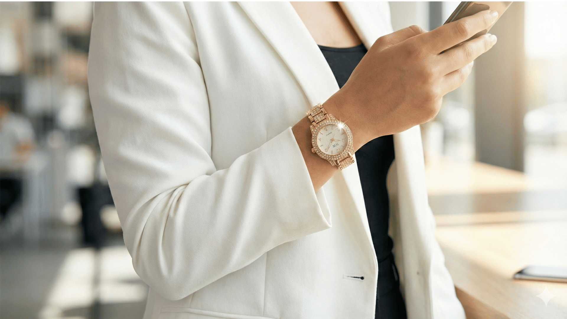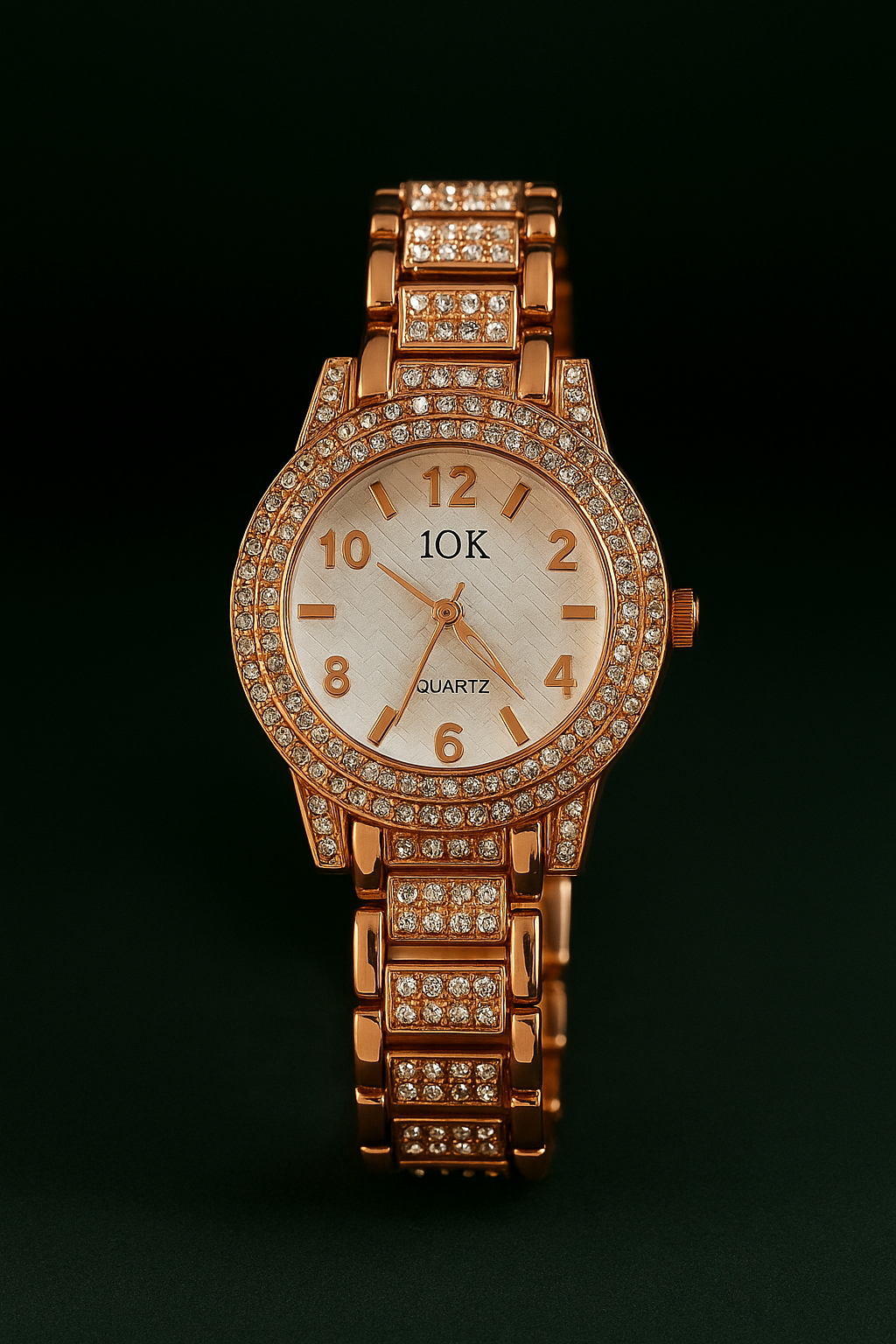 Behind the glitz and glamour lies reliable technology. The IOK watch is powered by a high-precision Quartz movement, ensuring accurate timekeeping with minimal maintenance. Unlike fashion watches that tarnish quickly, our premium gold plating is designed for lasting durability, keeping your timepiece looking new for longer.